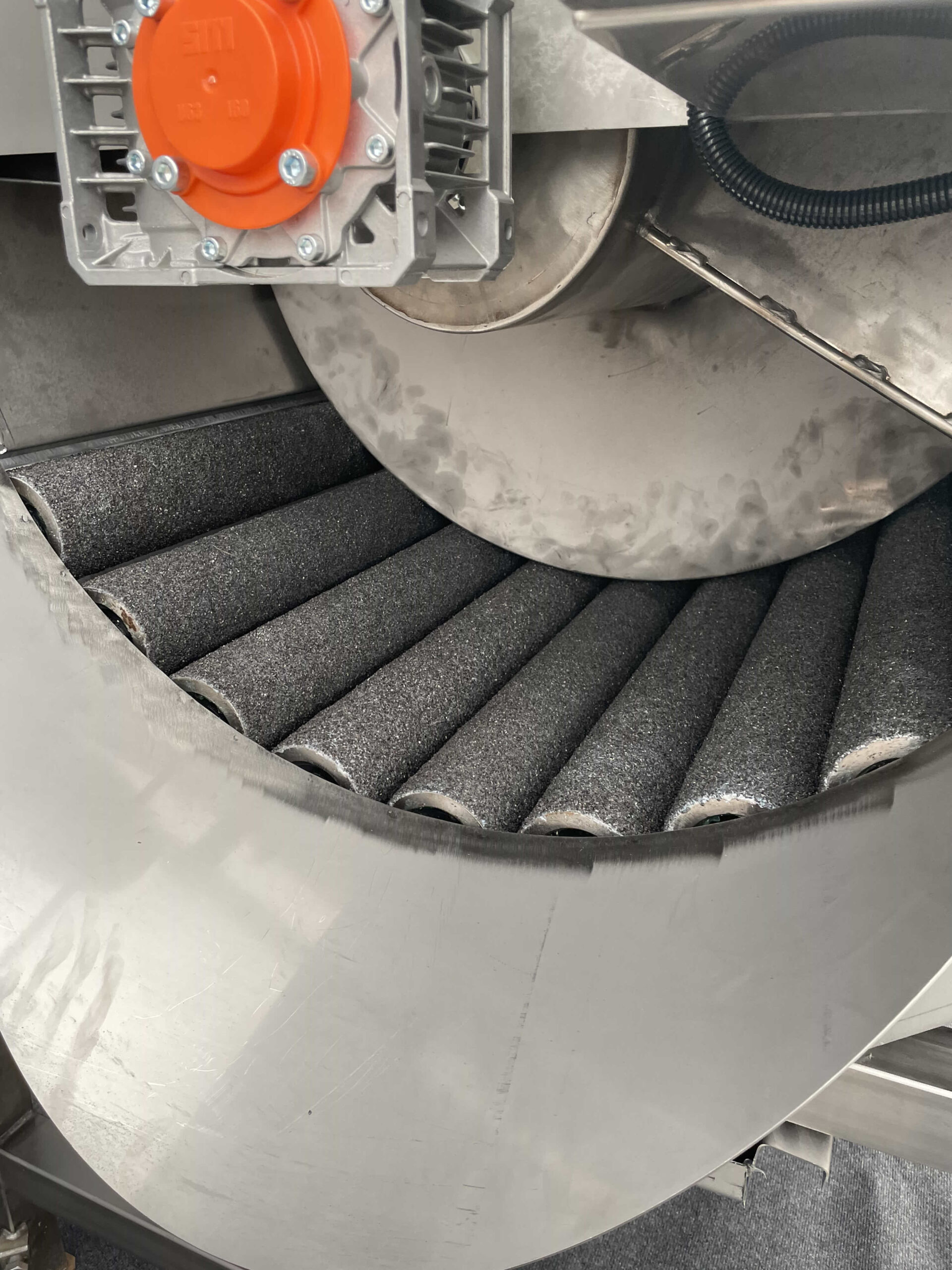 A gép lelke 9 darab korundbevonatú henger, amelyek között a zöldségek áthaladnak. A hámozási folyamat intenzitása a hengerek és a belső szállítócsiga forgási sebességének fokozatmentes szabályozásával állítható. Ez lehetővé teszi a pontos hámozást anélkül, hogy a gép túlzottan koptatná a termék mélyebb rétegeit. A folyamat során szórófejek folyamatosan öblítik a zöldségeket, segítve a héj eltávolítását és a tisztítást.